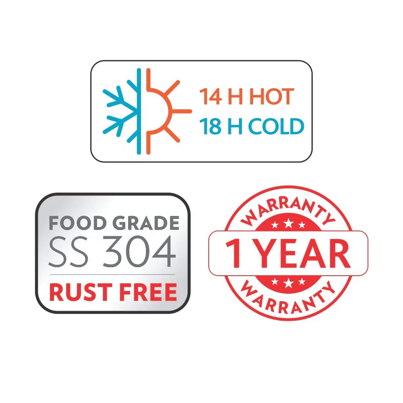 Keeps your drink hot for 14 hours and cold for 18 hours