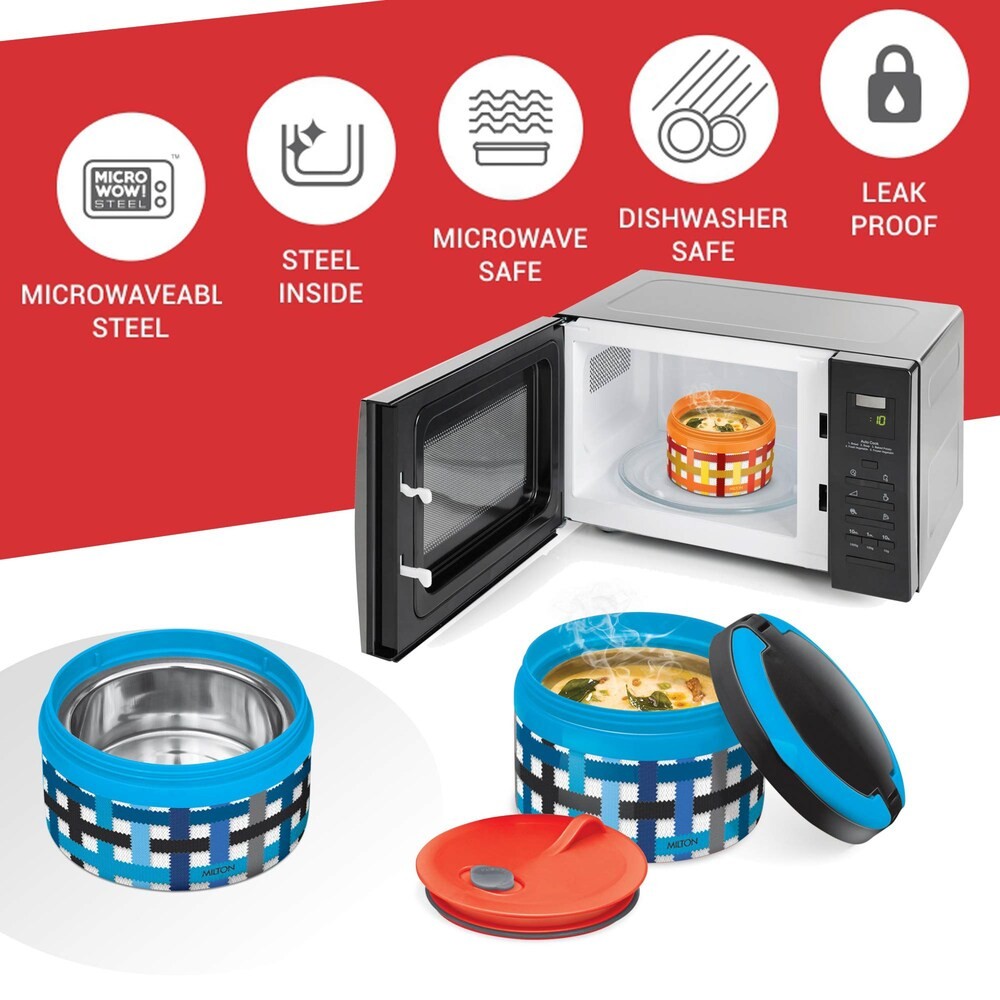 • Microwaveable leak proof containers with inner steel can be used for reheating