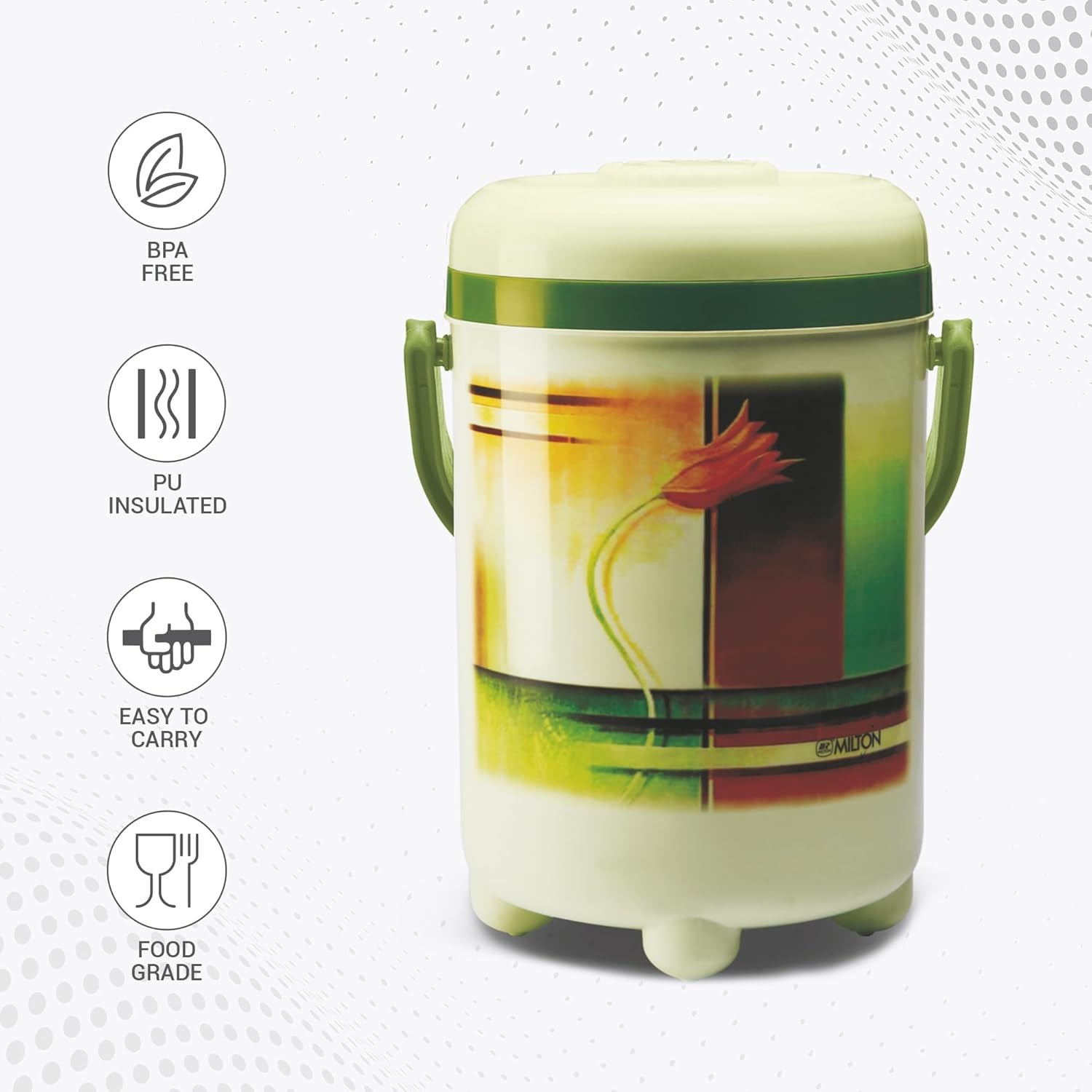 Insulated tiffin that keeps food hot and fresh for long hours 5 large stainless steel inner containers designed with a handle the inimitable milton tiffins and lunch boxes range have been constantly evolving and moving ahead with time. They are sure to keep your food hot and fresh for long hours. To add to that they come in unique designs which always come with the essential element of functionality.